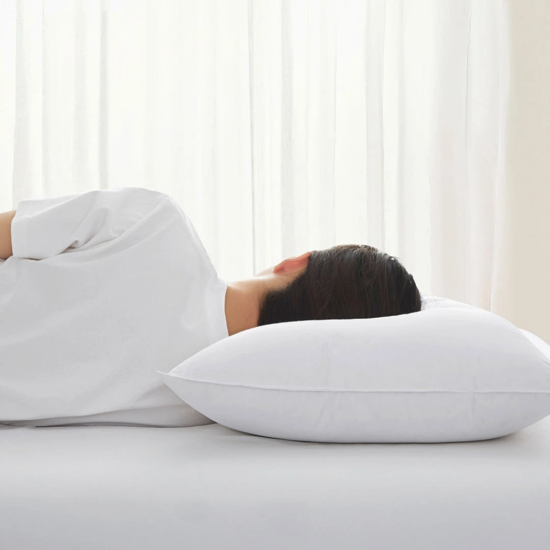 The outer layer of the down feather pillows is a blend of 75% white down and 25% white feathers, while the inner layer is filled with 90% white feather and 10% white down to create a soft, fluffy texture, improving your sleep quality.