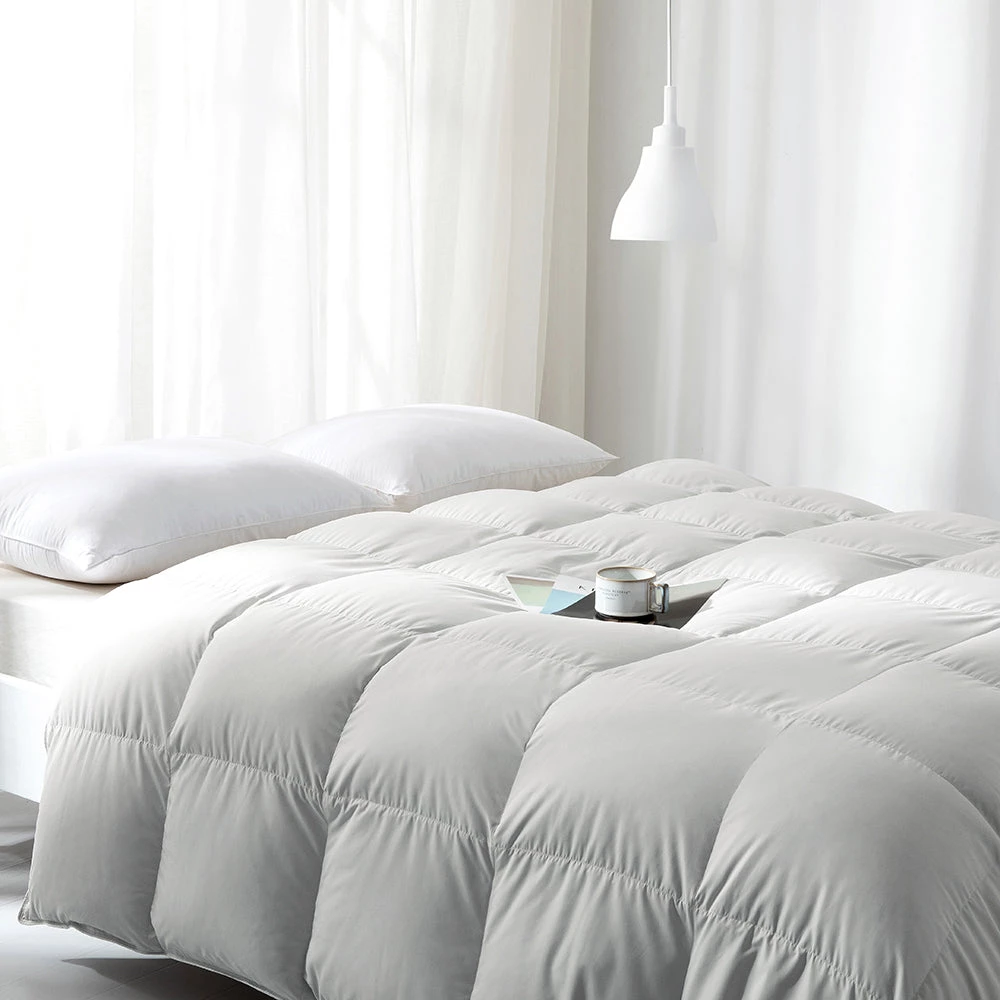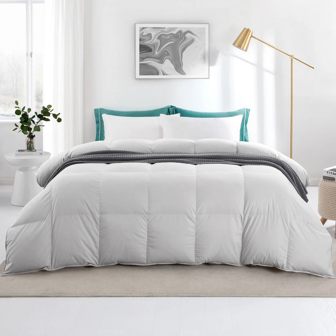 - It is the perfect blend of 75% white goose down and 25% white goose feather, with the perfect weight. It is an ideal comforter for warmth and year-round comfort, contributing to an enhanced sleep quality.