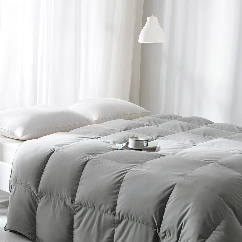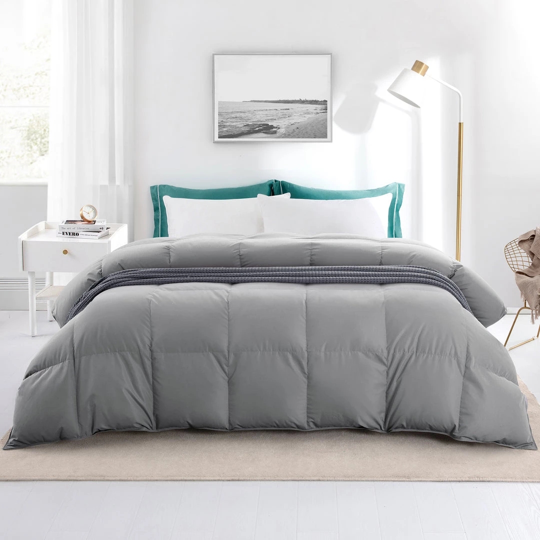 - It is the perfect blend of 75% white goose down and 25% white goose feather, with the perfect weight. It is an ideal comforter for warmth and year-round comfort, contributing to an enhanced sleep quality.