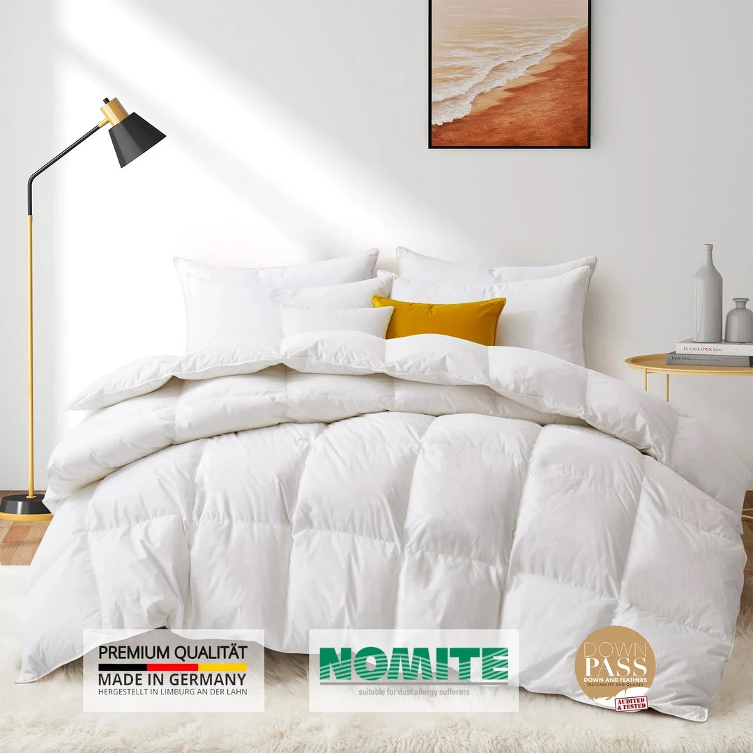 This natural, safe and sustainable down comforter is made in Germany. Products made in Germany enjoy the best reputation across the world. This German down comforter is certified with RDS(Responsible Down Standard), STANDARD 100 by OEKO-TEX®, DOWNPASS and NOMITE.