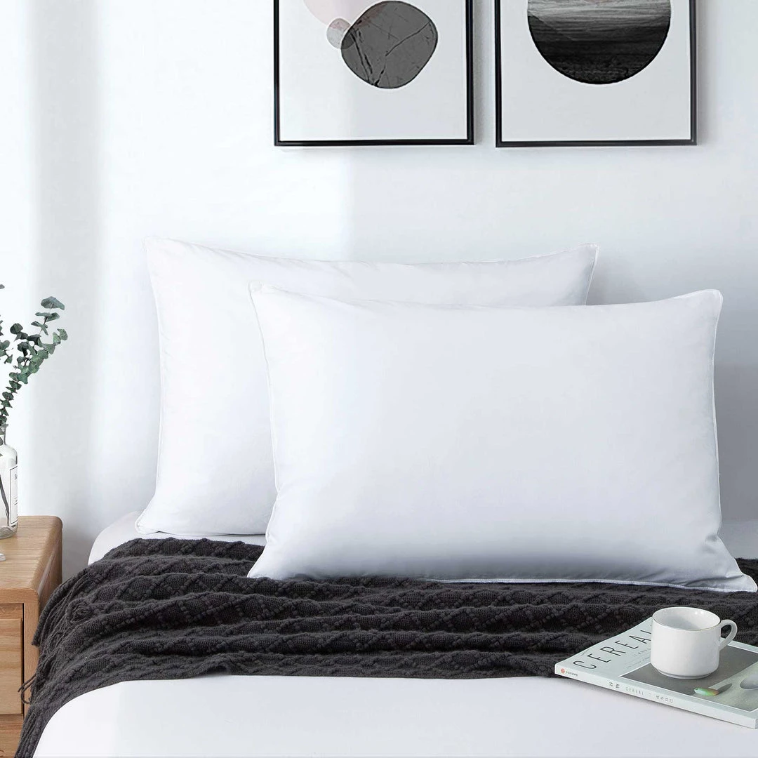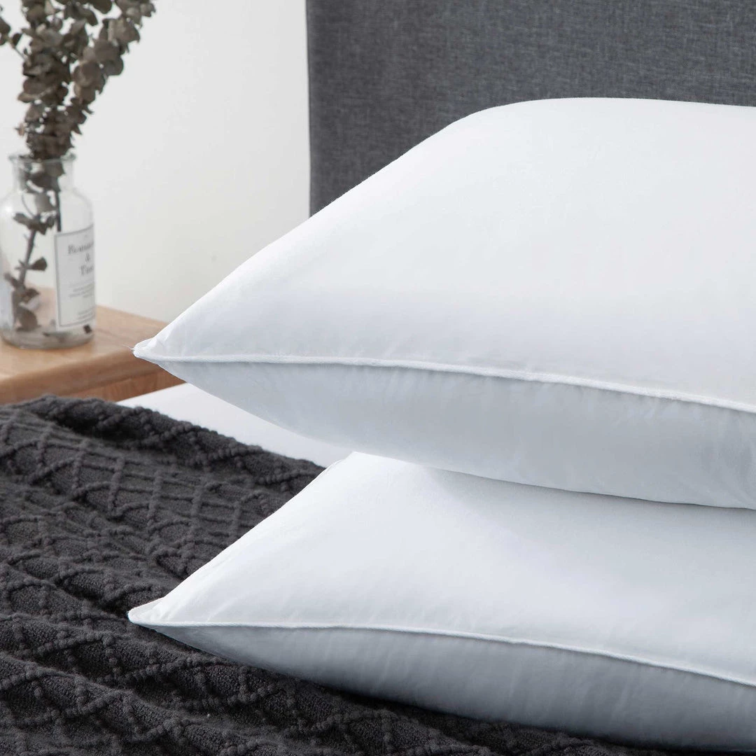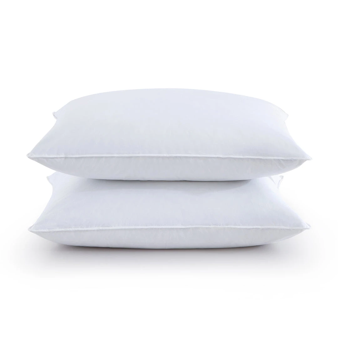 Our bed pillows filled with goose down and 1-2 inch length baby feather, that can ensure down and feather pillow enough firmness with good supportive. The proportion of down and feather is popular for many hotel pillow. If you are looking for a hotel pillow, this would be a good choice for you.ย In order to get a good sleep experience, the feathers are shorter than 2 inch. Feathers are selected by big geese in mature period which can reducing off odor of feather.