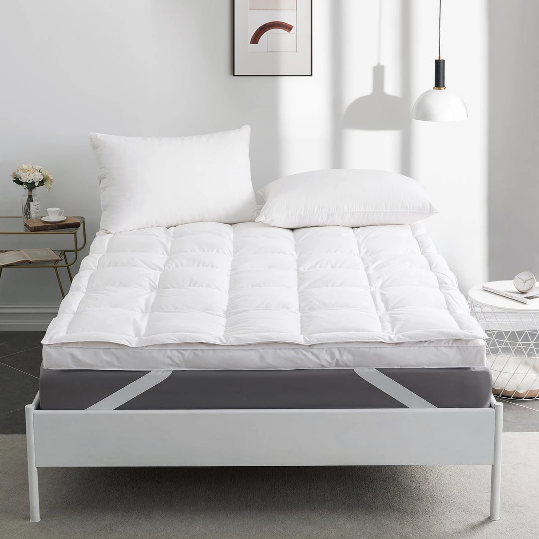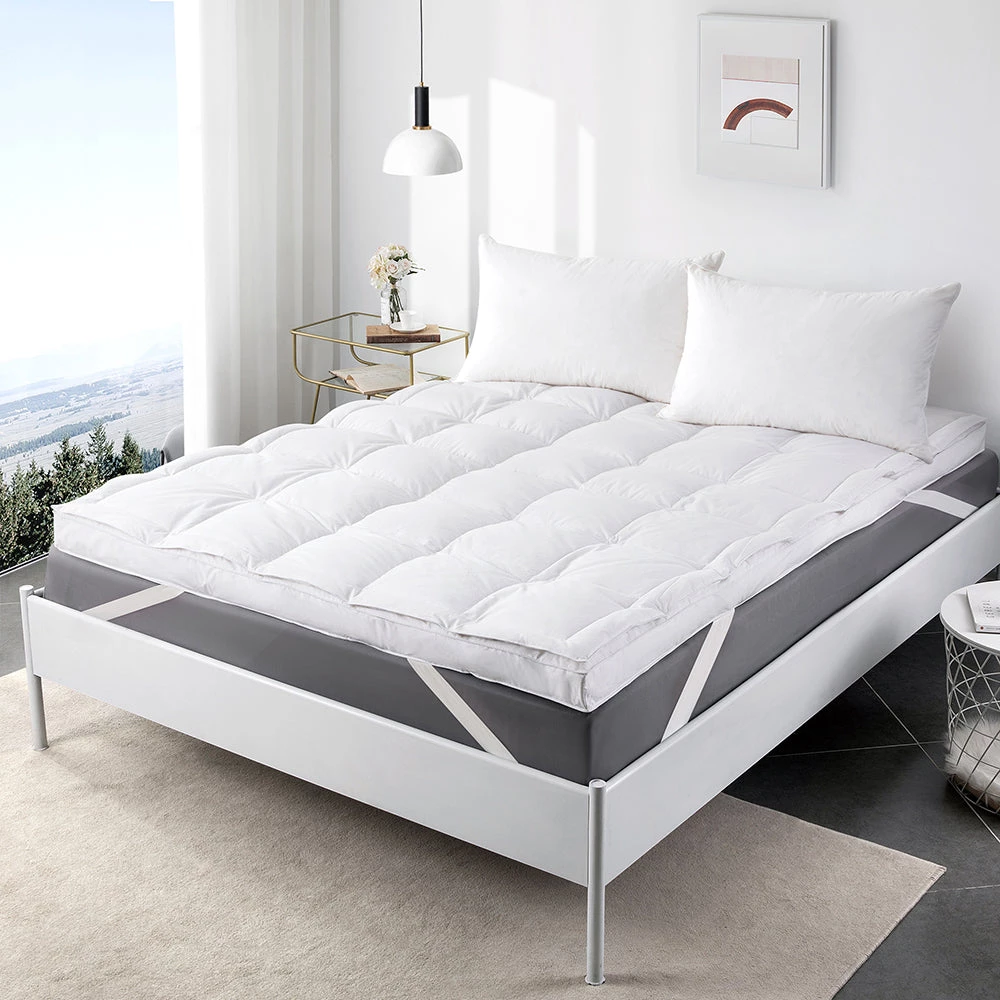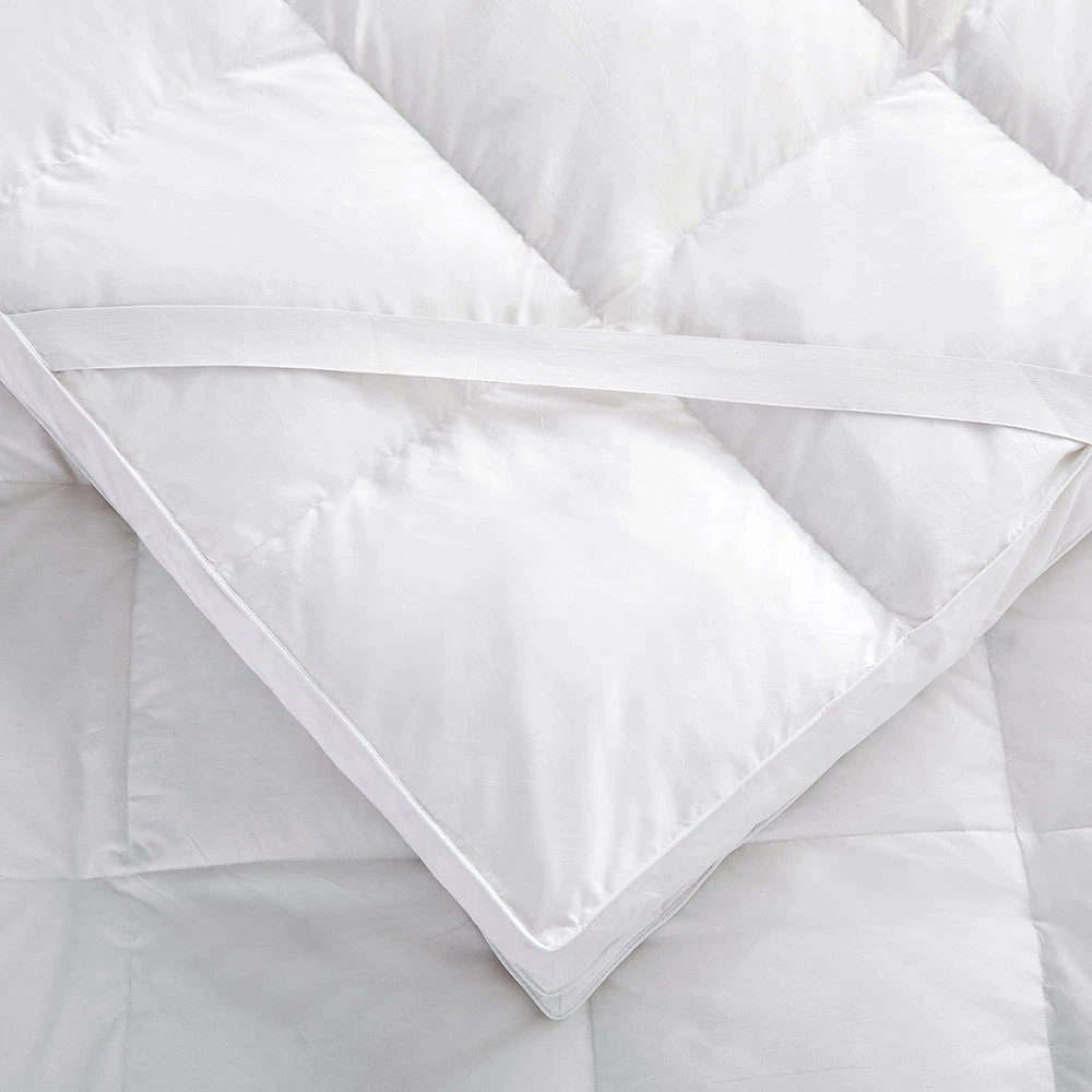 - The bottom layer is made up of 100% natural white gooseΒ feather filling. ThisΒ dense featherΒ layer balances plushness and warmth, providing you with a restfulΒ sleepΒ night after night.