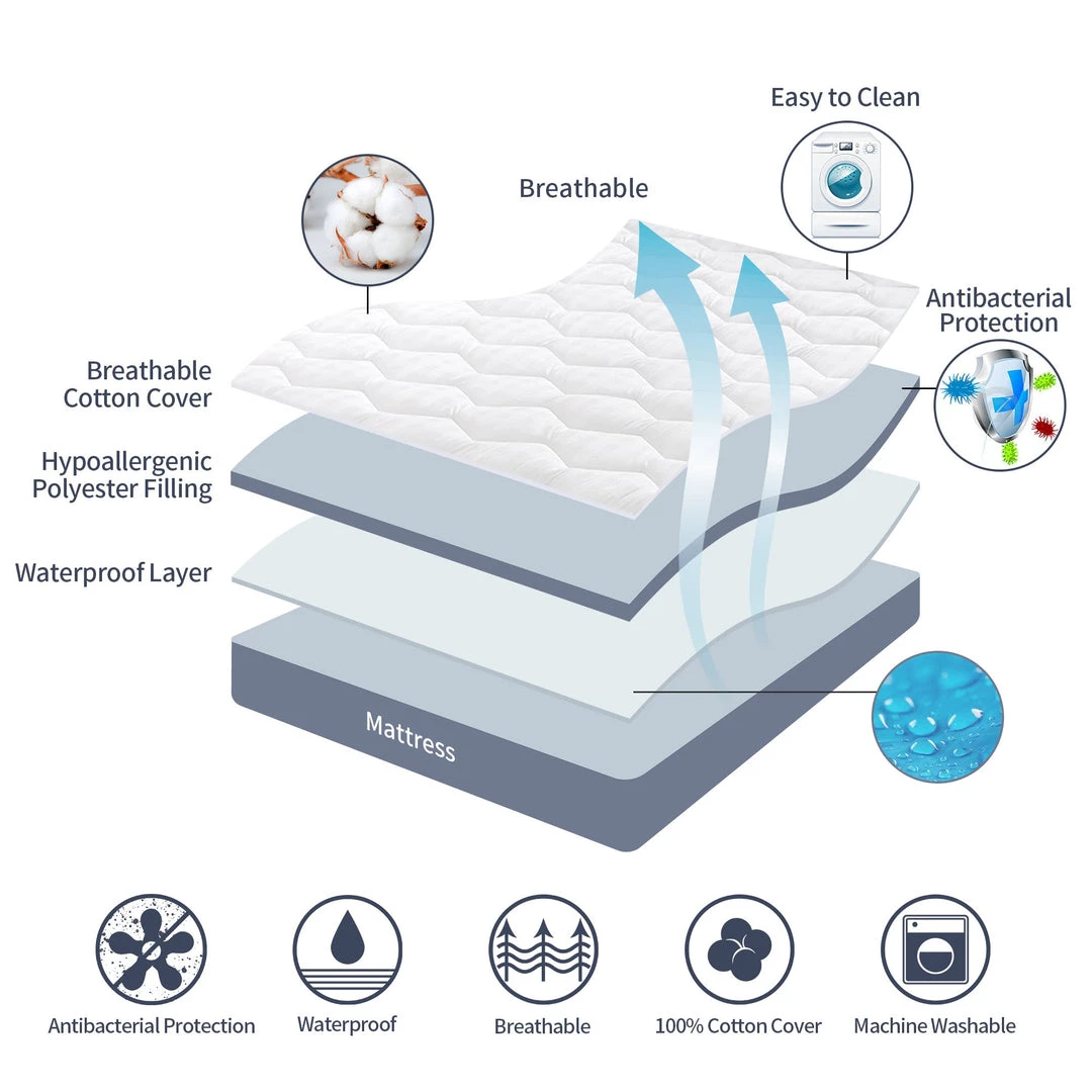 DESIGN – Hypoallergenic fiber with antimicrobial technology, super stretch skirt fits mattress up to 18 inches deep