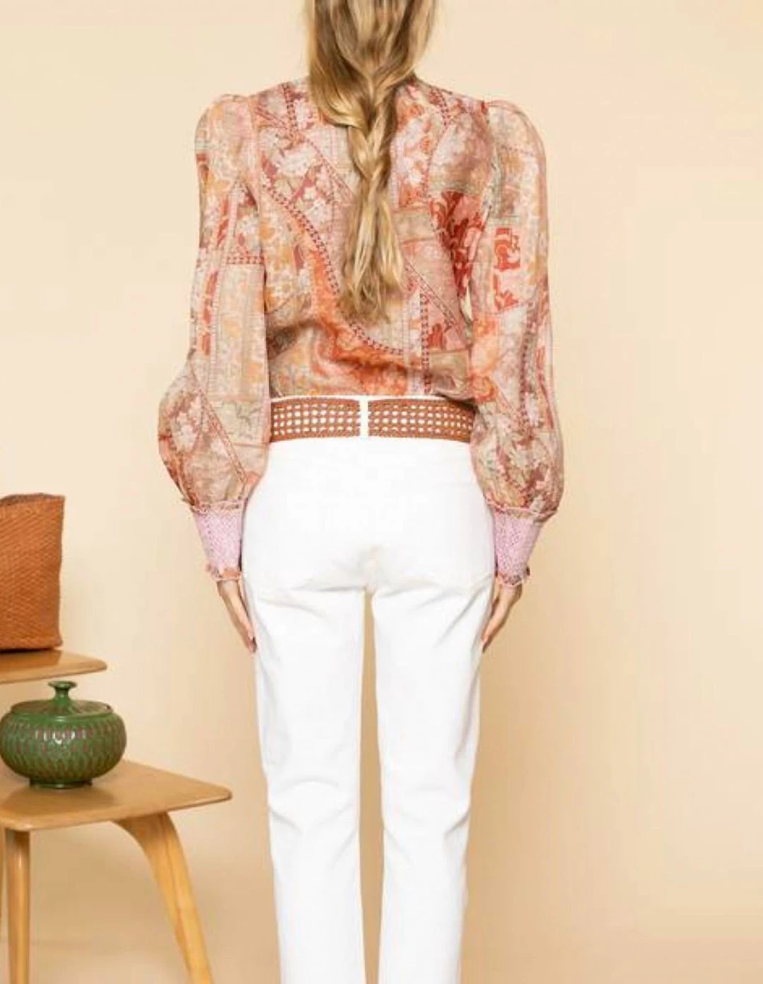Buy ๐ Zimmermann ๐ฉ women Kaleidoscope Tuxedo Blouse in Red Swirl Floral ๐
